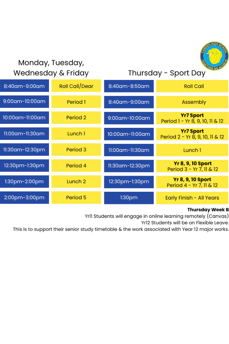 Find information about our school bell times. Learn about our start and finish times, breaks and activities.