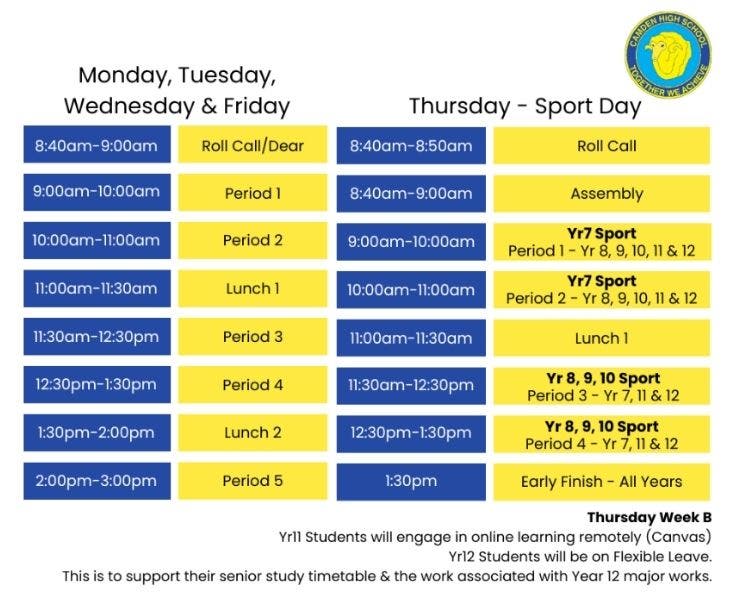 Our school day is structured around a clear timetable. We have set times for learning sessions, activities and lunch. Understanding the bell times helps students get the most out of each part of the day.